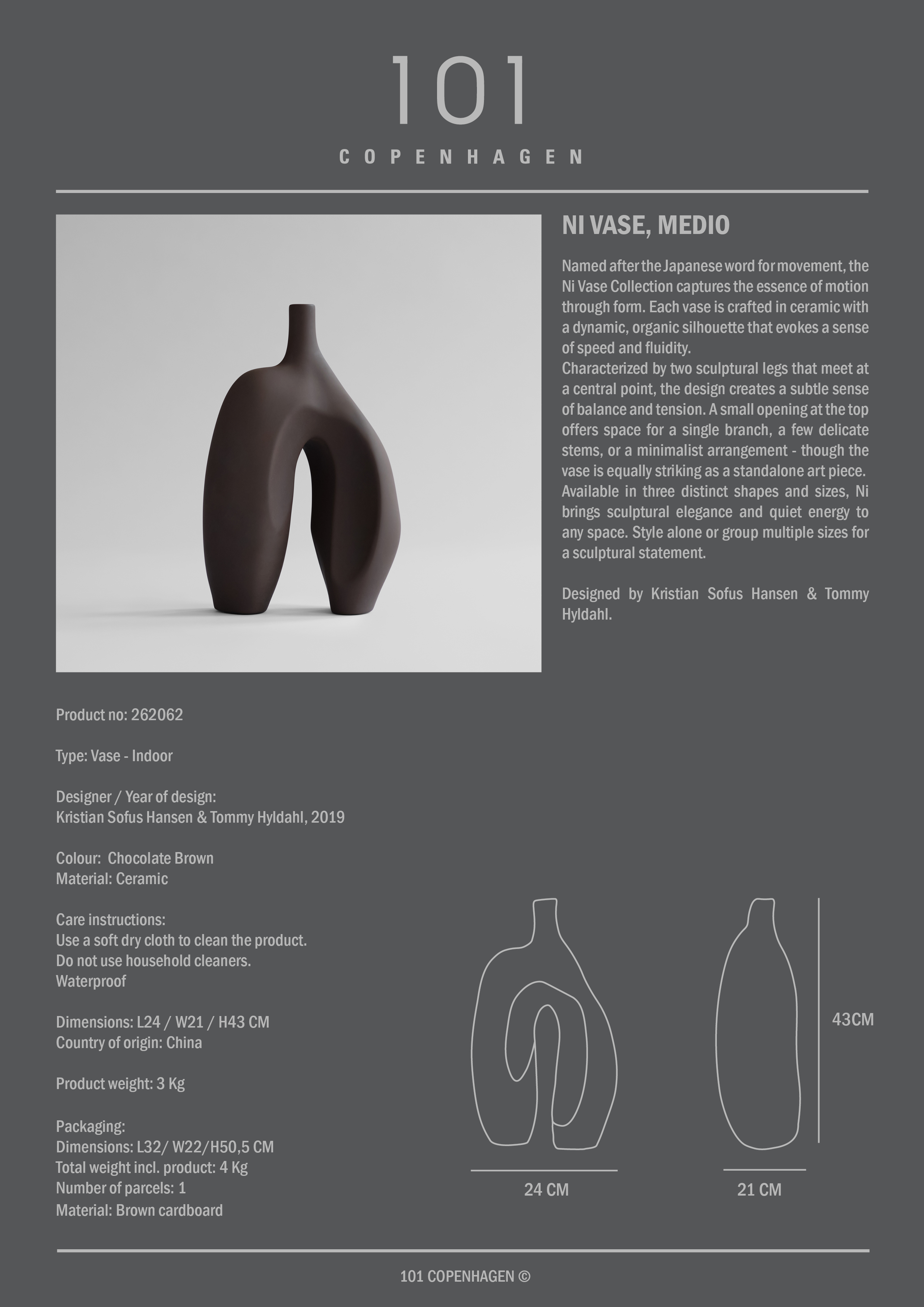101 Copenhagen Ni Vase Medium Chocolate brown