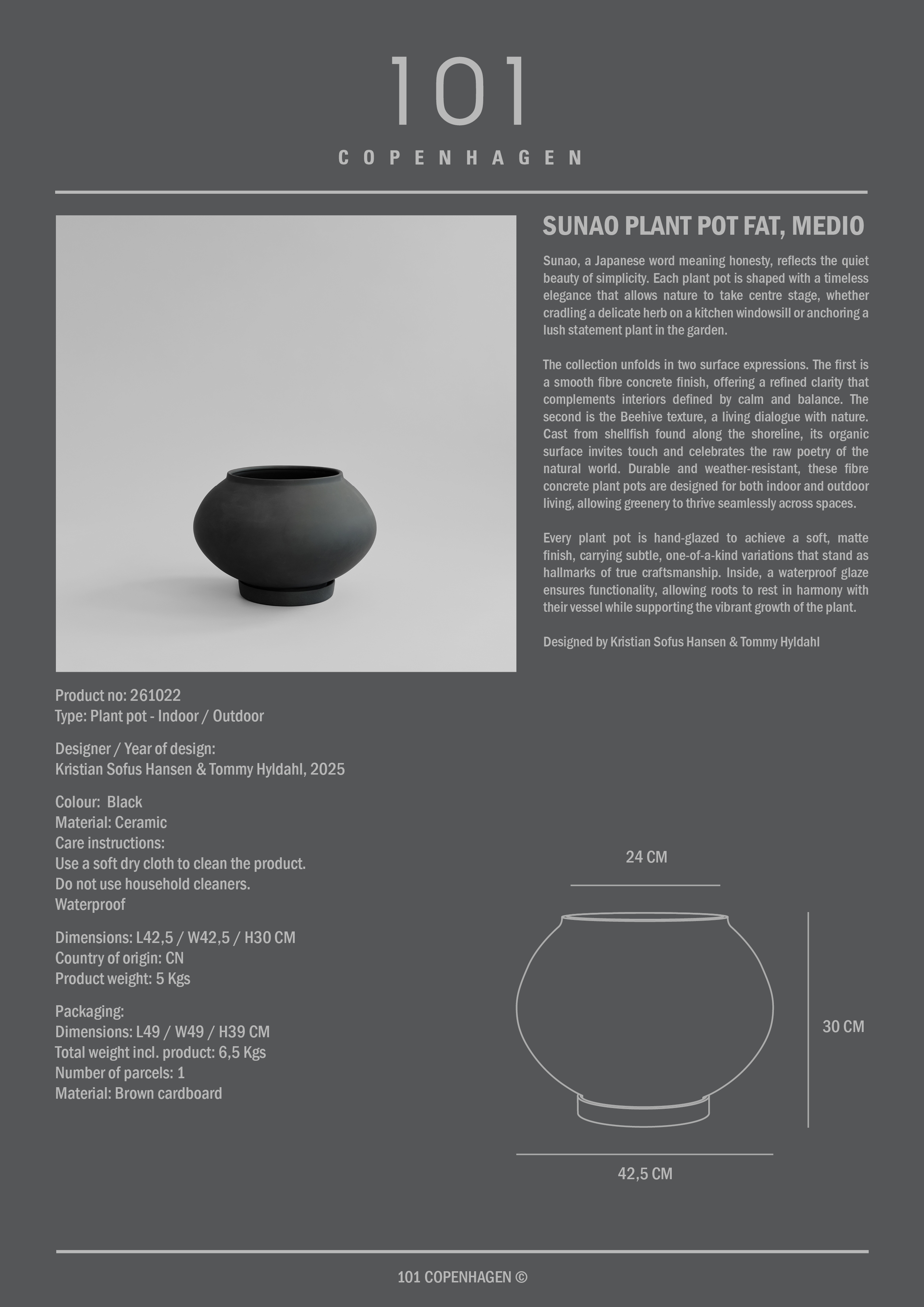 101 Copenhagen Sunao Fat Potted Plant Medium Black 330 € Live price match Ready for delivery in 30–40 days Add to basketExplore more product information Free shipping on orders above 150 € Excluding large furniture and other selected products 365 days return rights Authorised distributor