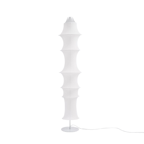 The Artemide Falkland series is an artistic meeting between form and function, where designer Bruno Munari created a lamp in 1964 that functions as both a lighting object and a sculpture. The series is characterized by a cylindrical shape created by an elastic tube of finely woven material stretched between seven metal rings of different diameters, where the weight of the rings and the tension in the fabric create the spontaneous, organic silhouette of the lamp. The refined design makes Falkland much more than just lighting — it acts as a statement in the room. The light spreads softly and diffusely through the fabric-covered tube, and an aluminum reflector inside emphasizes the curves of the fabric and creates a warm atmosphere. The series is available in several heights, which provides flexibility for different rooms and ceiling heights, and the choice of materials combines honest, quality components with a lightness in expression and construction.