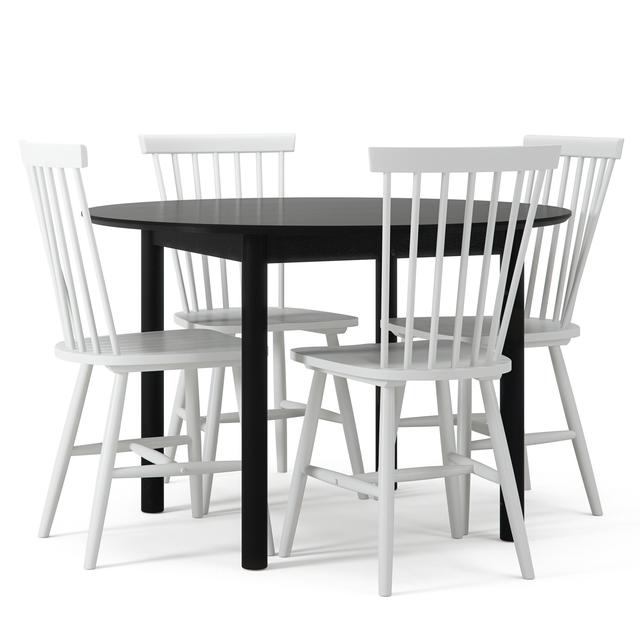 The dining table set is available in different colors and is part of the Departments Wood collection. It is designed for private use and is delivered unassembled.