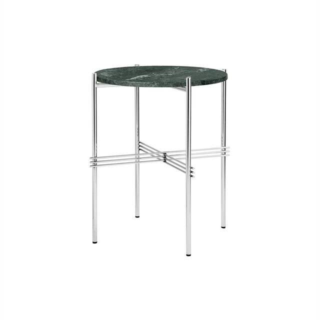 GUBI TS Side Table Round Ø40 Polished Steel/Green Guatemala Marble