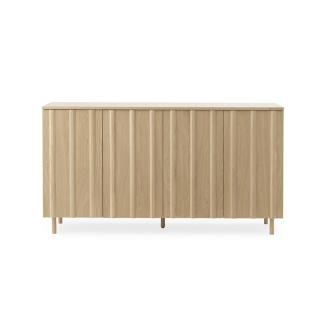 Concept: The Rib series is characterized by the trapezoidal wooden panels that nicely adorn the front of the doors. Designer Simon Legald draws inspiration from the Nordic summer houses from the 1960s, which had wooden slats on the facades. The carat details give the Rib series a timeless design and create a nice decorative effect. They help to break the otherwise uniform doors and provide a refined depth and dynamics. The doors are manufactured with a click function, so they can be easily opened without the use of a handle. The Rib series consists of a sideboard and a cabinet, both of which have removable shelves, so they can store any item and be moved around as needed. Both the sideboard and the cabinet come in different colors and can be used individually or in combination with each other to complete the design and create the ultimate storage solution around the home.