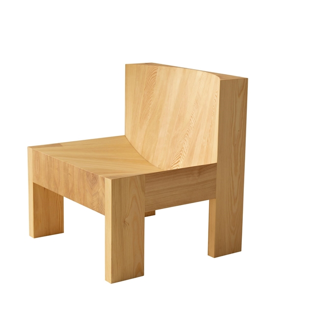 Design: Max Lamb for Vaarnii Konceot: This chair is created from robust pine wood, which gives it extraordinary durability and a long life. Despite its tough appearance, the chair offers a surprisingly soft and comfortable sitting experience that invites hours of comfort. The chair's construction is based on standard wooden sections that are carefully assembled to form a unique and well-thought-out design. Two significant hollowed out areas in the seat highlight the natural grain of the wood and add a distinctive visual element to the chair. The chair's mathematical and transparent construction gives it a unique aesthetic expression that mixes simplicity with complexity in the most beautiful way. This chair is not just a place to sit, but a work of art that conveys both form and function with a surprising elegance. Experience the beauty of the natural charm of wood with this remarkable chair.